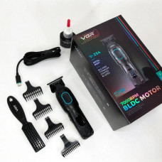 Профессиональный триммер для волос и бороды VGR V-977 BLACK аккумуляторный с LED-дисплеем и 4 насадками